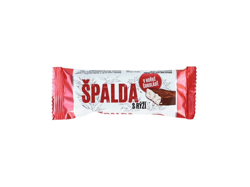 Špaldová tyčinka s rýží je lehoučká pufovaná špaldovo - rýžová tyčinka v hořké čokoládě.