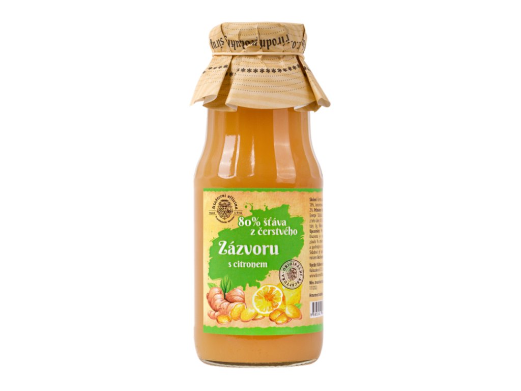 Šťáva z čerstvého zázvoru je šťáva lisovaná z čerstvých oddenků Zázvorovníku lékařského. Zázvorník (neboli zázvor lékařský) obsahuje především silice a aromatické látky, které mu dodávají jeho typickou štiplavou chuť a vůni, a to díky sloučeninám jako gingeroly a shogaoly. Dále je bohatým zdrojem vitamínů (A, B, C, E) a minerálů (draslík, hořčík, fosfor, vápník, železo). Mezi další obsažené látky patří vláknina, sacharidy a antioxidanty. Šťáva obsahuje 80% podíl zázvoru. Případný zákal nebo sediment není na závadu.