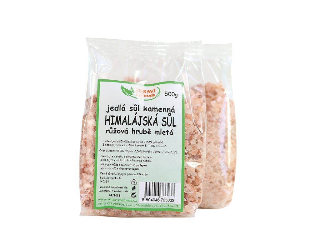 Himalájská hrubě mletá růžová sůl je nerafinovaná přírodní kamenná sůl, neobsahuje žádné chemikálie, aditiva nebo konzervační látky, je určena především k běžnému použití v kuchyni k dochucování pokrmů. Himalájská kamenná růžová sůl pochází ze severní části Pakistánu, z oblasti zvané Punjab. Za její růžové zabarvení jsou odpovědné minerály, které jsou v ní obsažené. Tato sůl je velmi podobná běžné stolní soli. Australská studie prokázala, že v porovnání s běžnou stolní solí obsahuje himalájská kamenná růžová sůl vyšší množství různých prvků a to především vápníku, hořčíku, železa, manganu, křemíku, draslíku a síry. Celkem obsahuje jak růžová, tak bílá himalájská kamenná sůl 84 pro tělo žádoucích, přirozeně se vyskytujících, minerálů.