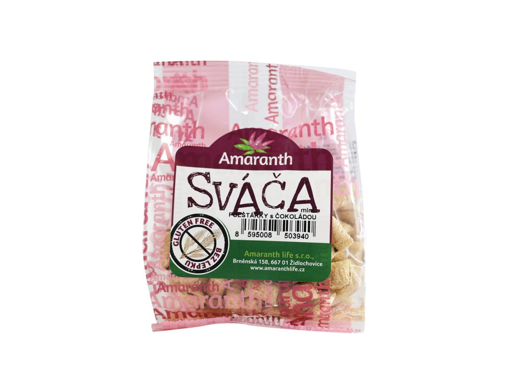Sváča mini polštářky s čokoládou 25g Amaranth bez lepku