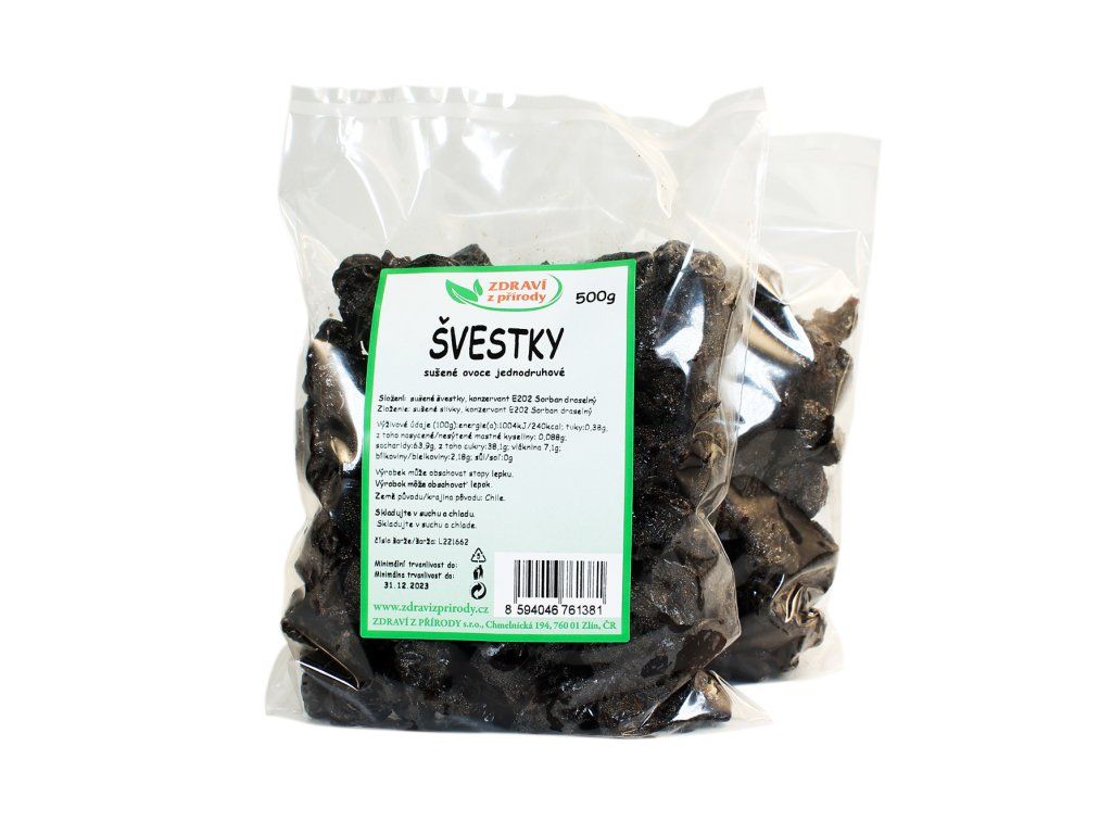 švestky ovoce sušené jednodruhové, konzervat E202 sorban draselný