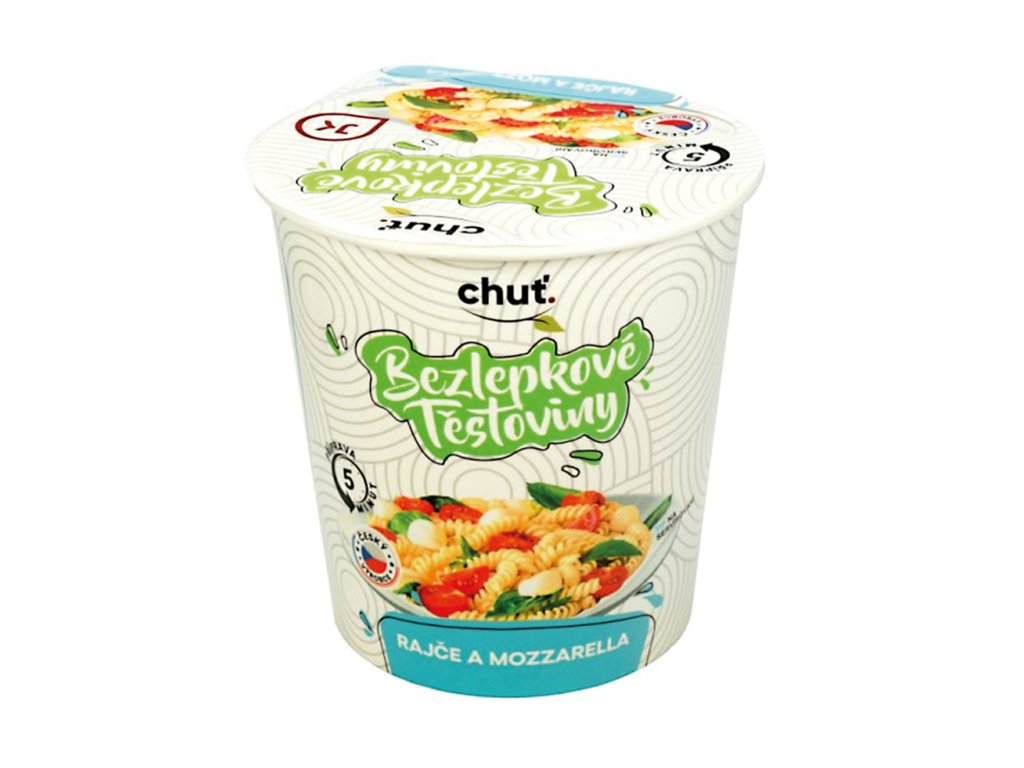 BEZLEPKOVÉ INSTANTNÍ TĚSTOVINY S RAJČATOVO - MOZZARELLOVOU OMÁČKOU