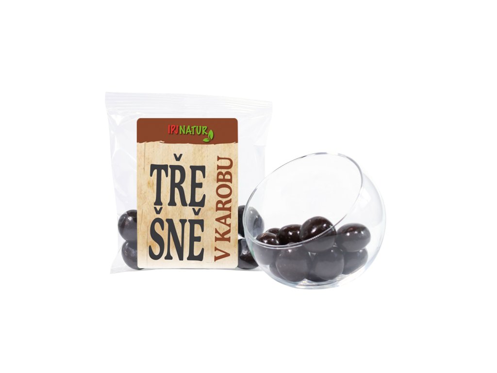 Třešně v karobu jsou kombinací lahodných jemně kandovaných třešní a karobové polevy, jsou výbornou variantou originálního rychlého občerstvení, vhodnou alternativou pro rychlou svačinku, pro pohoštění, při chuti na něco zajímavého nebo ve studené kuchyni pro přípravu a dekoraci dezertů.