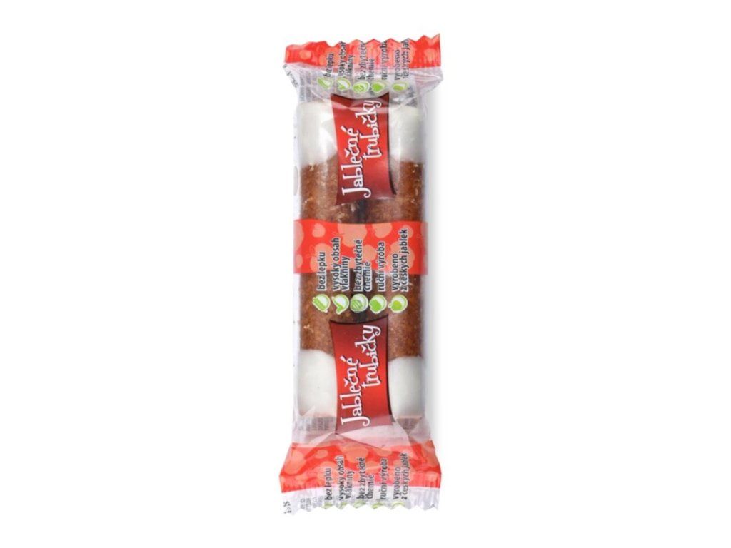 Jablečné trubičky s jogurtovou polevou je sušená ovocná pochoutka vyrobená z čerstvých jablek.