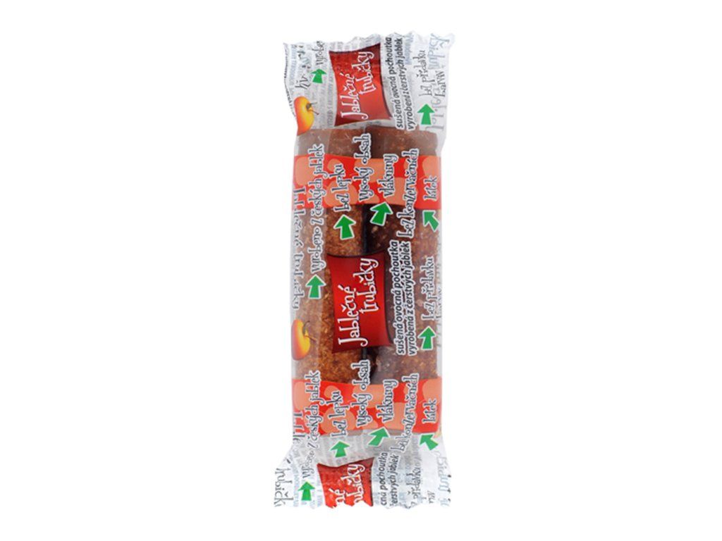 Jablečné trubičky s karobovou polevou je sušená ovocná pochoutka vyrobená z čerstvých jablek.
