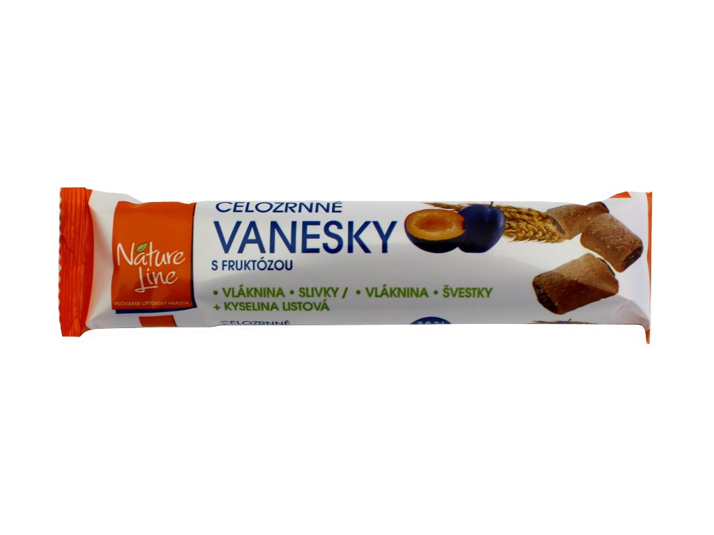 Švestkové celozrnné Vanesky jsou celozrnné sušenky se švestkovou náplní a fruktózou bez palmových tuků. Sušenky obsahují vlákninu, kyselinu listovou, jsou zdrojem vitamínů E, D a skupiny B, díky sušeným švestkám obsahují antioxidanty, draslík a železo a jsou vhodné pro diabetiky.