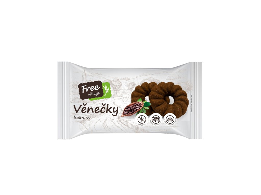 Bezlepkové kakaové věnečky jsou oblíbené tradiční sušenky obohacené o bambusovou vlákninu. Sušenky jsou vyrobené z kvalitních bezlepkových surovin, jsou vhodné pro osoby s celiakií a pro každého, kdo hledá chutné bezlepkové mlsání.