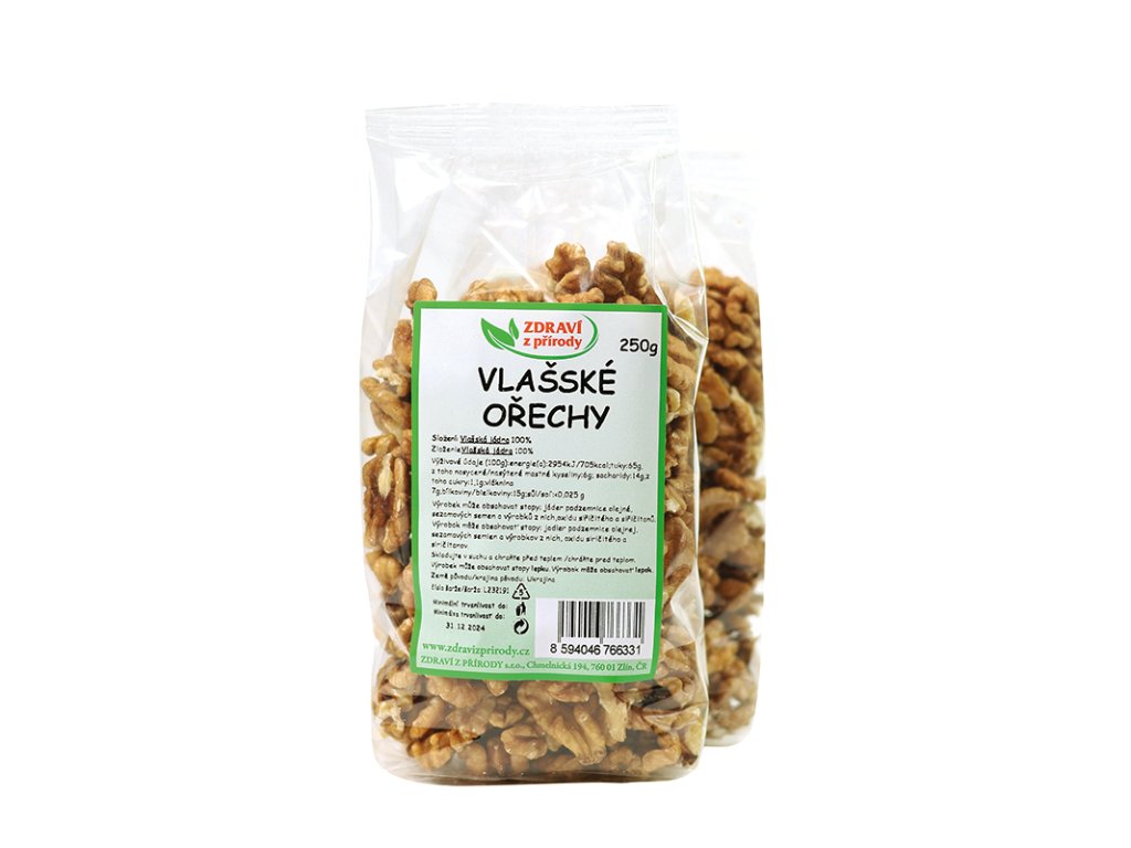 Vlašské ořechy jsou oblíbené tradiční ořechy určené k přímé konzumaci nebo pro výrobu obzvláště pekařských a cukrářských výrobků. Obsahují 70 % tuku včetně zdraví prospěšných omega-3 mastných kyselin. Dále obsahují bílkoviny, sacharidy, kyselinu listovou, vitamíny E, B1 a B6 a minerály hořčík, zinek, vápník, měď, draslík, železo a fosfor. Vlašské ořechy také obsahují látky, které mají antioxidační a protizánětlivé účinky.