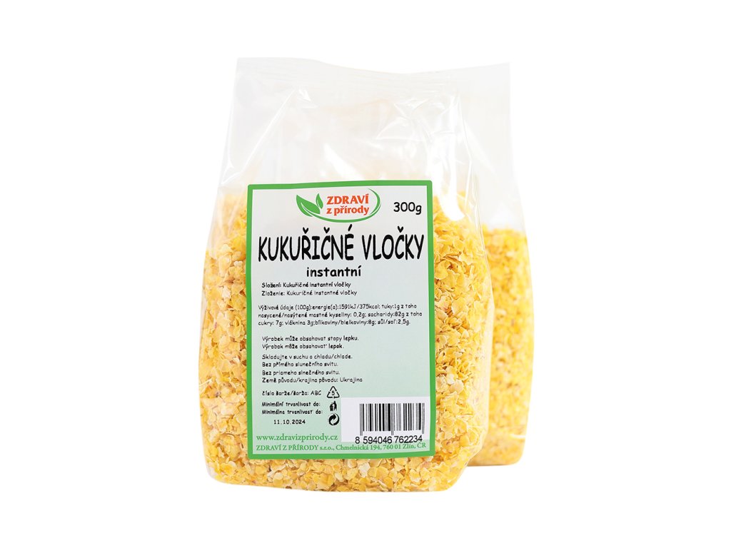 Instantní kukuřičné vločky jsou vyrobeny ze zrn kukuřice a jsou velmi praktickým pomocníkem v kuchyni, kde usnadní přípravu běžných jídel. Jsou snadno stravitelnou potravinou určenou k zahušťování jídel a pokrmů, lze je přidat do sladkých a slaných kaší, jogurtů a nákypů nebo je využít při přípravě domácího pečiva, moučníků a cukrovinek.