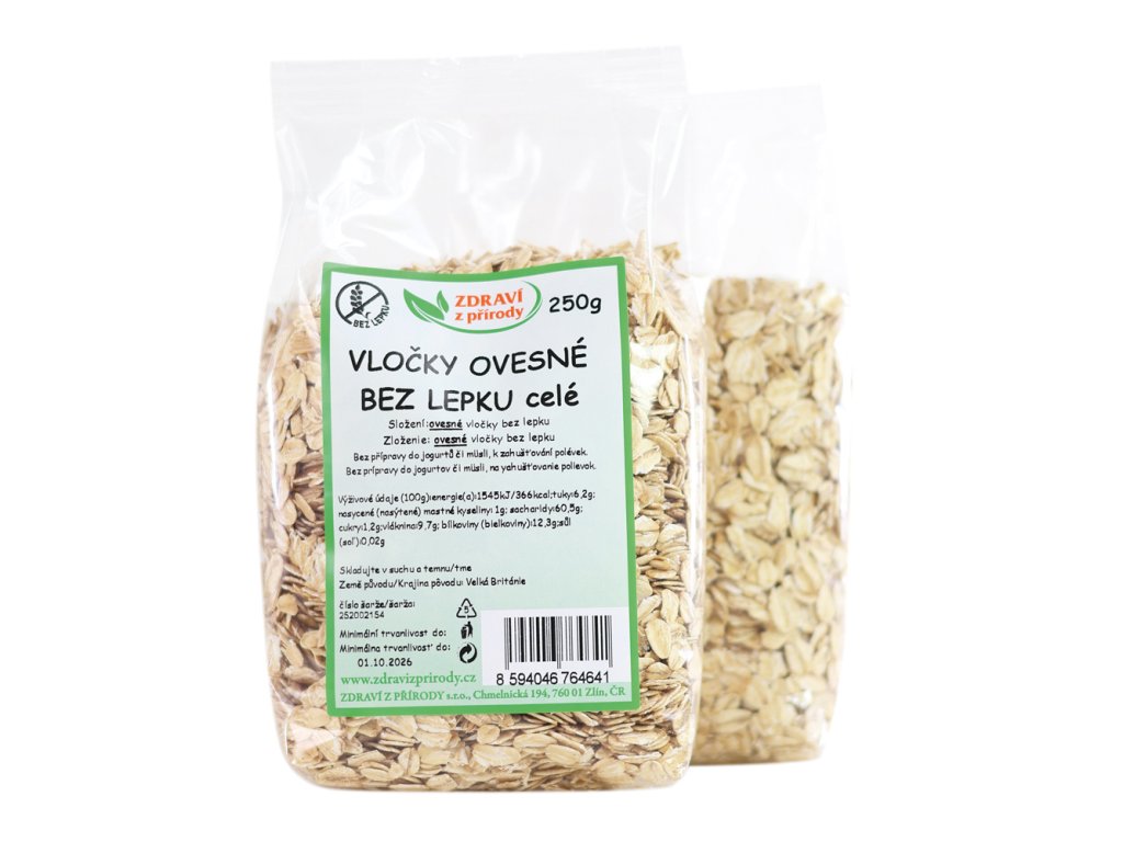 Naše nabídka ovesných bezlepkových vloček prodejní značky Zdraví z přírody obsahuje vločky ovesné celé 250g , ovesné celé 500g , ovesné jemné 250g , ovesné jemné 500g.