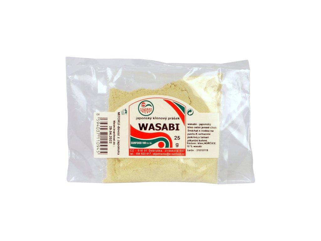 Wasabi je známé také jako japonský křen, jedná se o koření získávané z rostliny Wasabia japonica.Používá se v japonské kuchyni, zejména do sushi, kde slouží k dochucení pokrmu. Má antibakteriální, protizánětlivé a antioxidační účinky a je zdrojem vitamínů a minerálů, obsahuje zejména vápník, mangan, zinek, sodík, draslík, hořčík a měď, z vitamínů vitamín B1, B2, B3, B5, B6, B9, A a C.